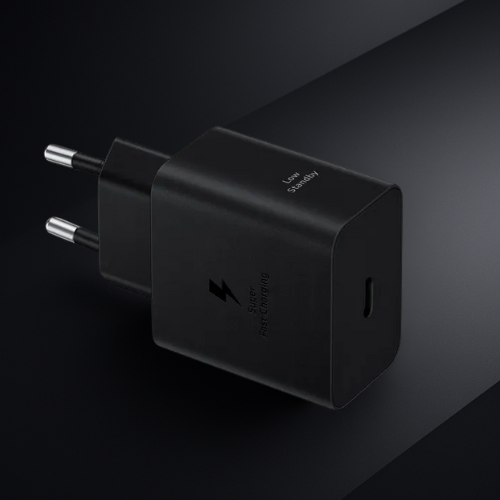 O Carregador Samsung 45W USB-C Preto não é apenas um transformador maior; é uma central de energia inteligente. Graças à tecnologia GaN (Nitreto de Gálio), este carregador consegue ser mais eficiente e gerar menos calor, apesar da sua elevada potência de saída.